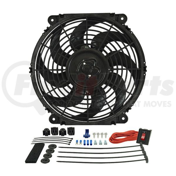 electric fans; 12"electric fans; curved blade electric fans; electric curved blade fans; 12" electric curved blade fans; 12" curved blade electric fan kits, primary cooling fans; made in usa electric fans