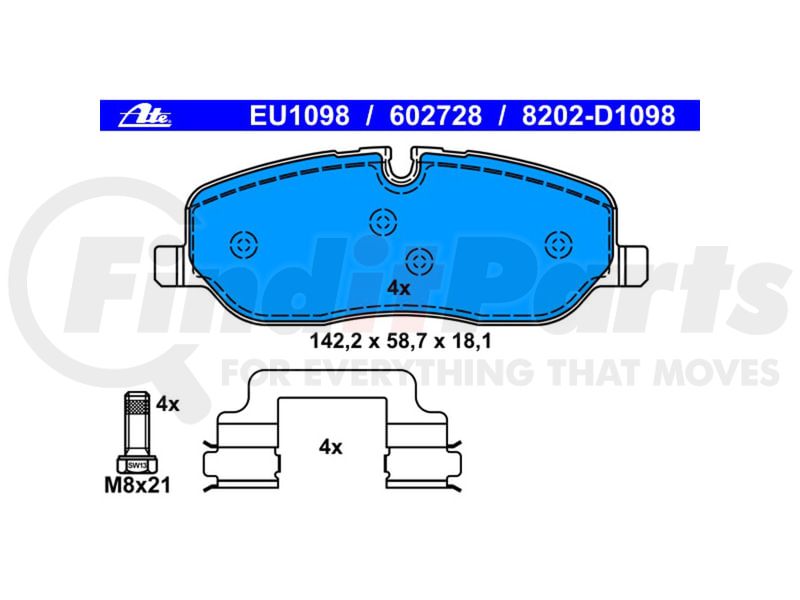 ATE Original Semi-Metallic Front Disc Brake Pad Set 602728 for Land Rover