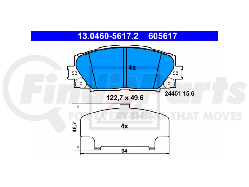 ATE Original Semi-Metallic Front Disc Brake Pad Set 605617 for Lexus, Toyota