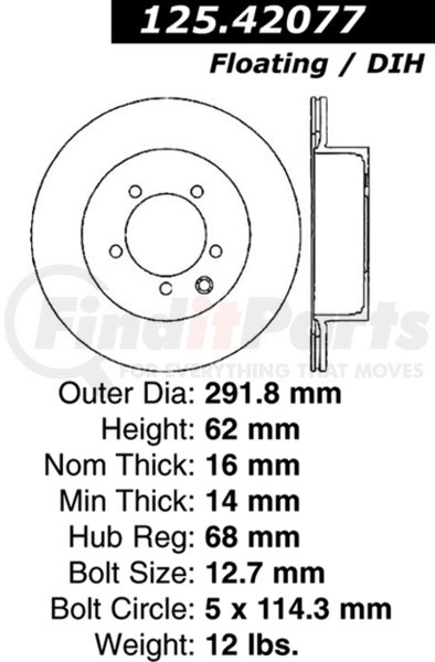 | Stud/Lug Hole Diameter | 12.700 MM |