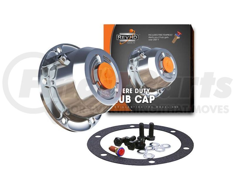 (888) 312-8812 Login SignupThe RevHD Trailer Axle Hub Cap Kit is configured for 4009-pattern trailer axle hubs used in oil-lubricated wheel ends. It provides a transparent viewing window to monitor lubricant level without removing the cap. The assembly includes the hub cap, gasket, mounting hardware, and fill plug to support complete installation on compatible trailer axles. Its metal housing secures against the hub flange to maintain a controlled seal under highway vibration. The RevHD RHO-T03 axle hub cap kit supports proper oil retention and inspection within commercial trailer wheel end systems.
