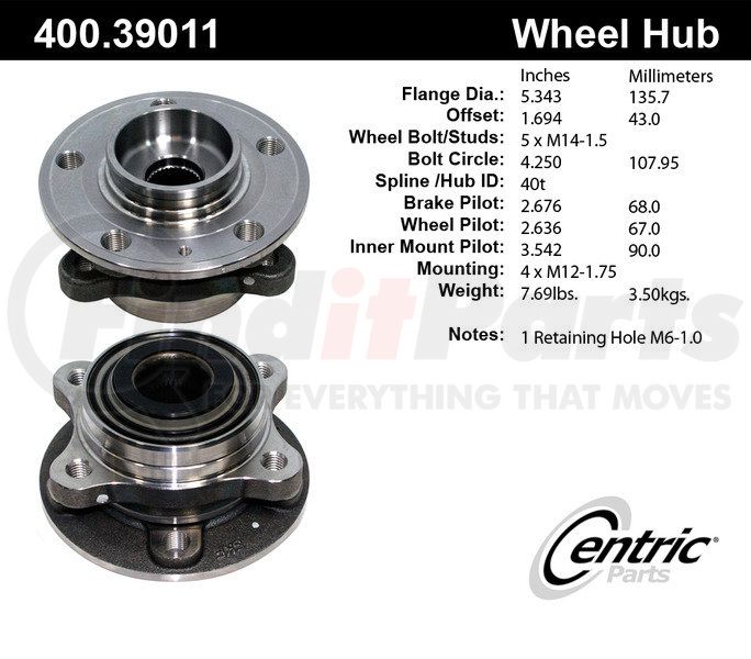 Centric Premium Hub and Bearing Assembly without ABS