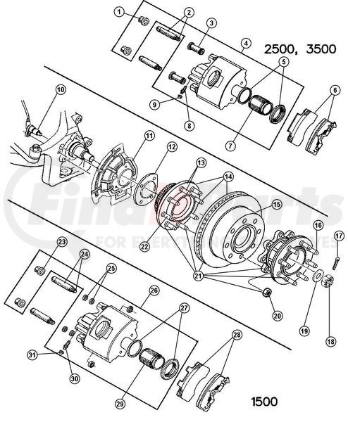 CHRYSLER 52069877AA HUB AND BEARING, HUB AND ROTOR. Left. Brake. Diagram 14