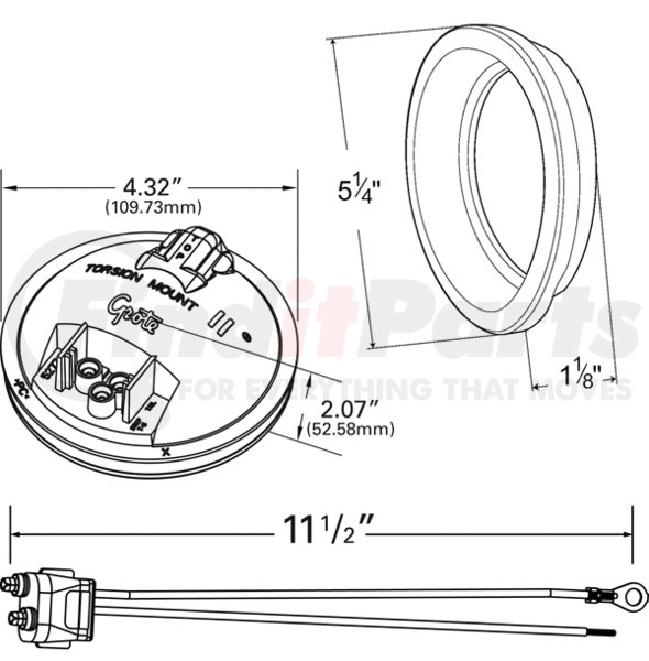 621813 by GROTE - 4" Torsion Mount License/Back-up Kit, Frosted Clear, Female-Pin (62171 + 91740 + 67010)